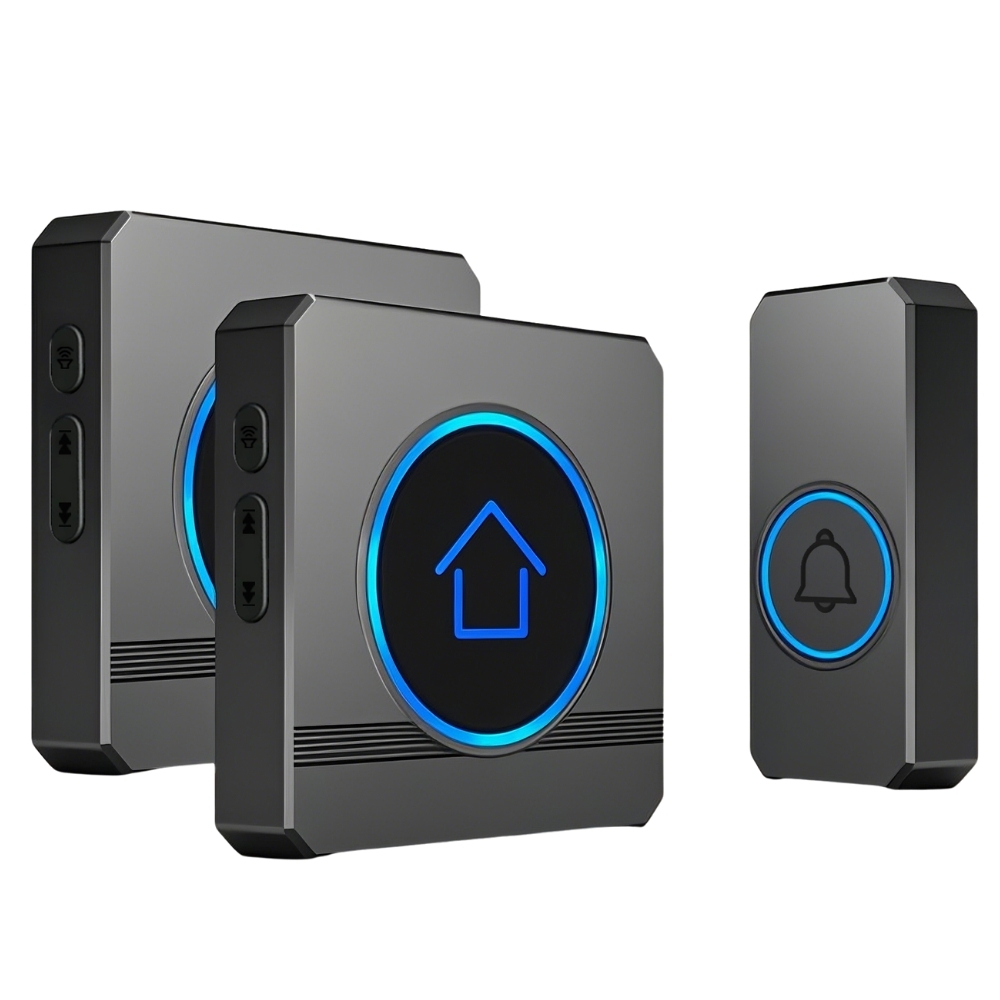 Sonerie wireless fara fir pentru exterior cu 2 receptoare, 5 Nivele de Volum, 60 de Melodii, IP55, 300m