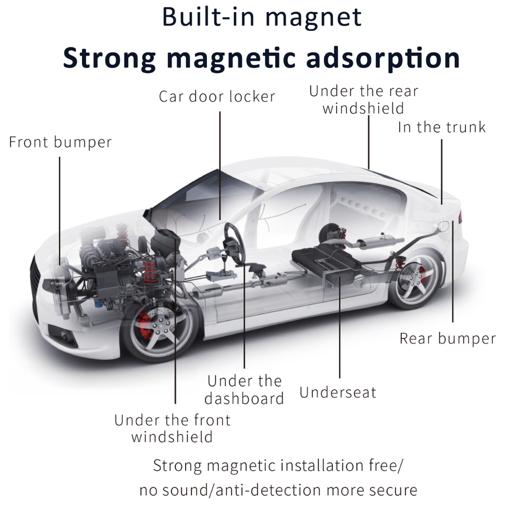 montare discretă sub mașină sau motocicletă,