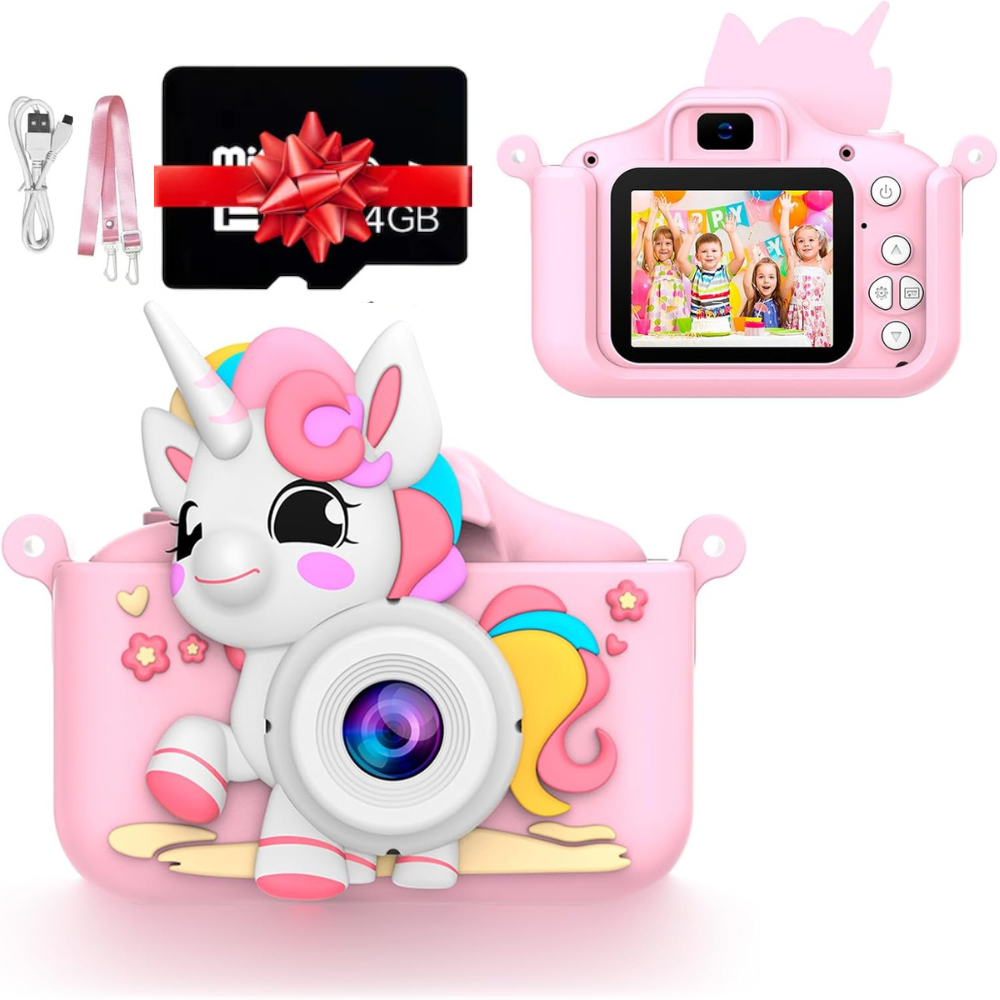 Aparat Foto Digital pentru Copii StartONTeam cu Design Unicorn, Cameră Selfie Dual Lens, Fotografii 48 MP, Filmare Full HD 1080p, Zoom Digital 8x, Ecran Color 2 Inch, Slot Card microSD, Baterie Reîncărcabilă – Ideal pentru Fete și Băieți